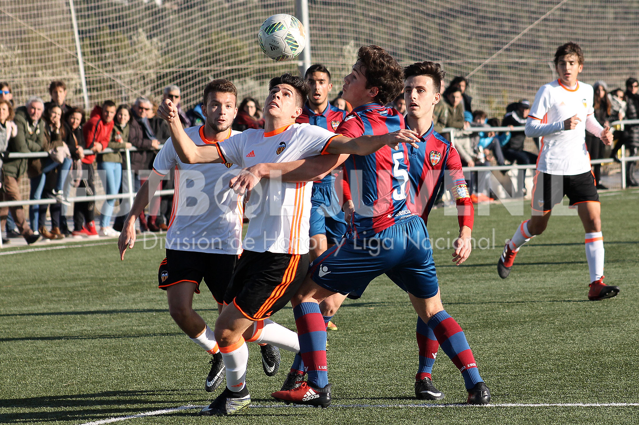 La segunda mitad estuvo marcada por el tempranero gol de Ferrán Torres, que entró por la derecha, se plantó ante Rives y ganó en el mano a mano. El de Foios dejó su huella en un partido que presenció el seleccionador español Sub-17, Santi Denia. Tras el 0 a 1 se cambiaron las tornas, el Levante fue mucho más incisivo y se puso el mono de trabajo. La salida de Carlos Moreno revolucionó la banda derecha, pero de igual modo que en el periodo anterior apenas generó peligro a Cristian. Un disparo a bocajarro de Adrián y algún remate tras acciones a balón parado fueron las mejores ocasiones de los locales. El Valencia pudo sentenciar con un buen remate de Fari en el tiempo de descuento, Rives salvó y el derbi acabó 0-1.